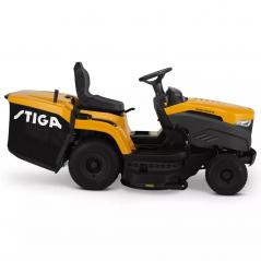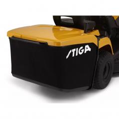 STIGA Estate 398 W SE z mocnym, 2-cylindrowym silnikiem STIGA. Hydrostat, szerokość 98 cm i kosz 240 l. Idealny do ogrodów do 5000 m².