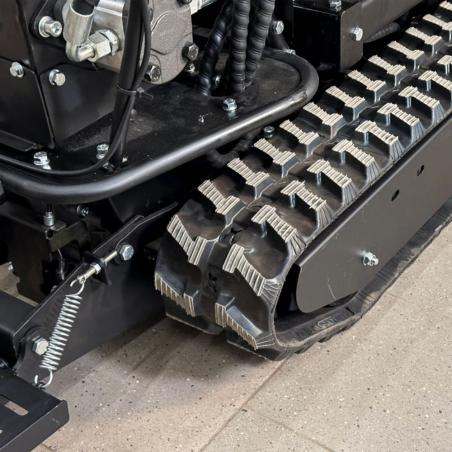 - Napęd Gąsienicowy: Grube, terenowe gąsienice o szerokości 180 mm zapewniają doskonałą trakcję, stabilność i przyczepność nawet na błotnistym, grząskim czy pochyłym terenie. Niski nacisk jednostkowy na podłoże minimalizuje uszkodzenia delikatnych powierzchni.