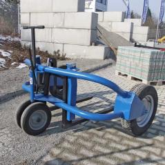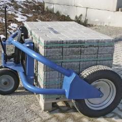 Profesjonalny wózek paletowy Probst PW III o udźwigu 1500 kg. Stworzony na plac budowy do transportu palet z kostką brukową w trudnym terenie.